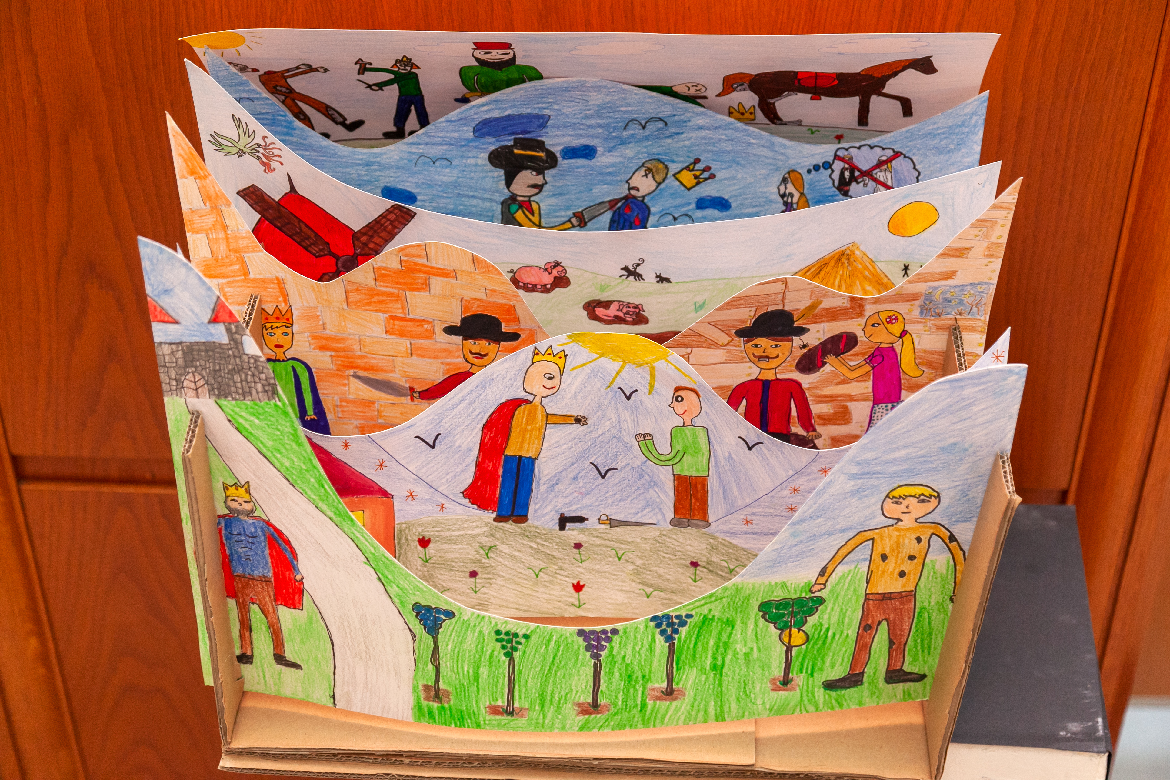 Az adott osztály diákja a kapott meséből bármilyen szereplőt, jelenetet, szimbólumot ábrázolhattak, illetve bármilyen